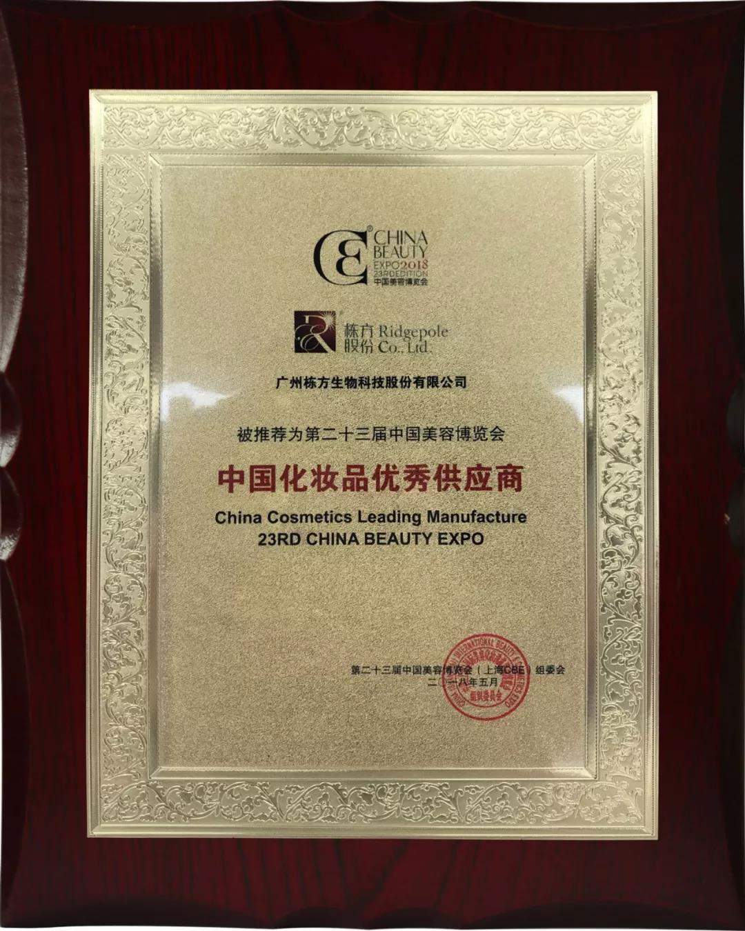 此次展會,棟方股份憑借其多年來在促進化妝品供應鏈上下游企業(yè)“綠色可持續(xù)發(fā)展”方面所取得的優(yōu)異成績,獲評第二十三屆中國美容博覽會“中國化妝品優(yōu)秀供應商”!