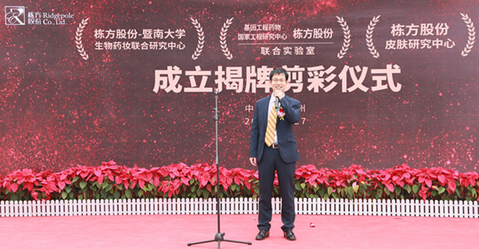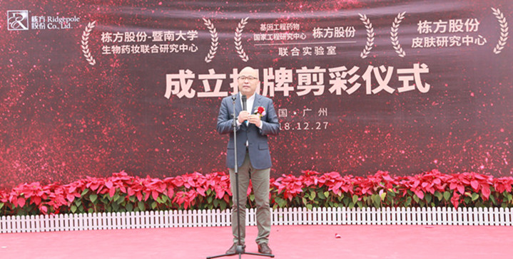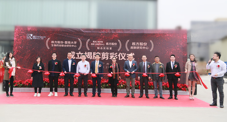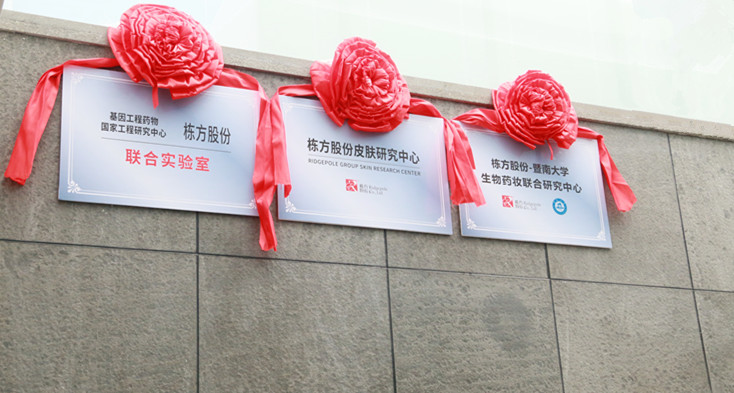 2018年12月27日上午,棟方股份技術(shù)合作揭牌剪彩活動在公司技術(shù)研究大樓一樓廣場隆重舉行,正式成立了“棟方股份--暨南大學(xué)生物藥妝聯(lián)合研究中心”、“棟方股份--基因工程藥物國家工程研究中心聯(lián)合實驗室”、“棟方股份皮膚研究中心”三大研究中心。此次生物藥妝技術(shù)重磅合作,在棟方技術(shù)創(chuàng)新發(fā)展史上具有重大里程碑意義。