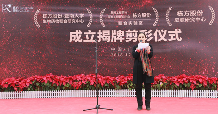 剪彩儀式上,棟方股份首席工程師曾颯博士和暨南大學(xué)教授、基因工程藥物國家工程研究中心主任劉忠博士分別致辭,中國美妝雜志總經(jīng)理桂紹元先生作為觀察媒體上臺發(fā)言,都表示隨著中國家庭及個人收入的顯著提高,消費能力不斷提升,消費者越來越追求高品質(zhì)的產(chǎn)品,化妝品品質(zhì)時代已經(jīng)到來,此次技術(shù)合作正順應(yīng)了這一趨勢,意義非凡!