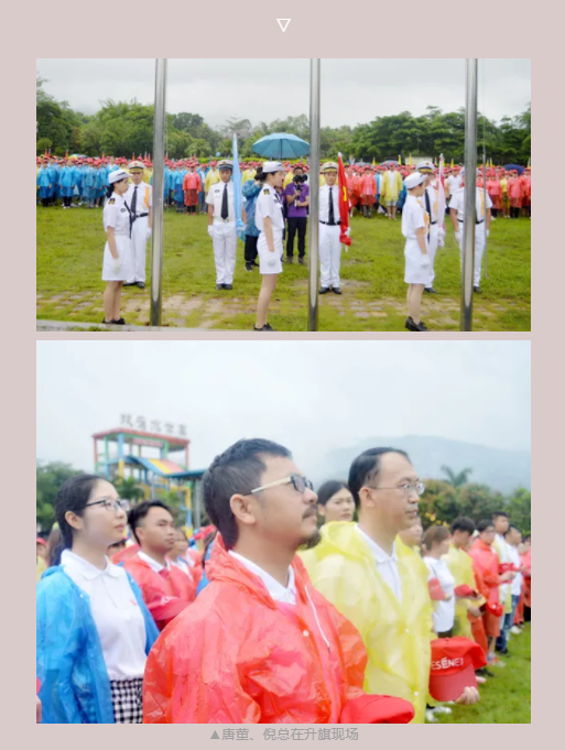 團建的第二天上午9點整,在拓展基地上舉行了獨具特色的棟方升旗禮,冉冉上升的旗幟,預(yù)示著棟方股份將踏上一個新臺階!升旗禮現(xiàn)場,唐董和倪總先后發(fā)表了講話,并對此次的團建活動進行了總結(jié)和分享。