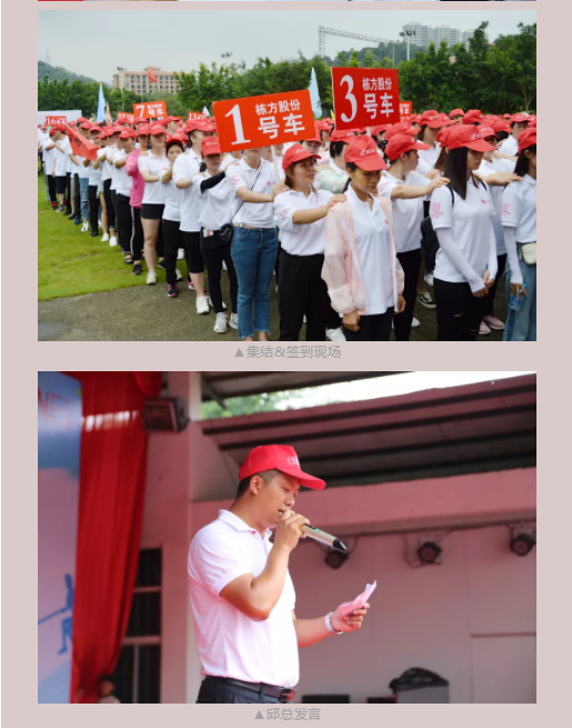 抵達目的地后,看到的是佇立在綠油油草地上的簽到墻,還有等候多時的基地教導員;在教導員的帶領(lǐng)下整齊列隊簽到,進入訓練場地,邱總上臺發(fā)言。