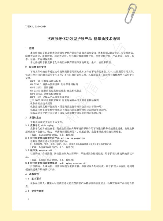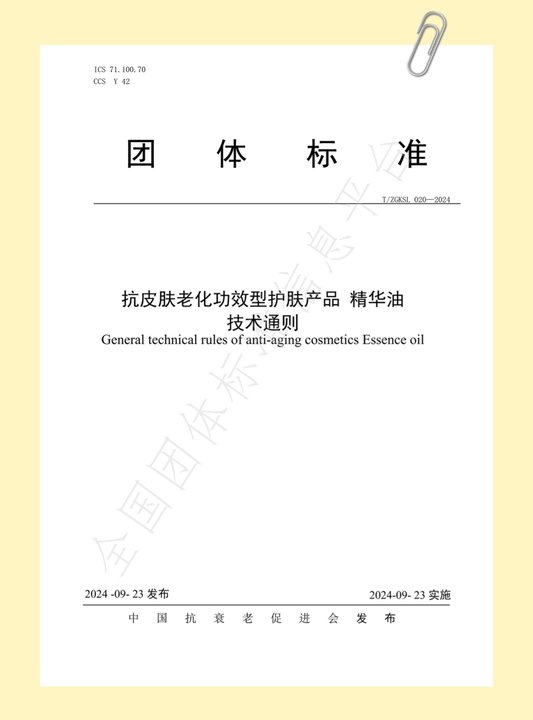近日,由中國(guó)抗衰老促進(jìn)會(huì)歸口管理、棟方股份參與起草的國(guó)內(nèi)首部《抗皮膚老化功效型護(hù)膚產(chǎn)品 精華油技術(shù)通則》團(tuán)體標(biāo)準(zhǔn)(T/ZGKSL 020—2024)正式發(fā)布。