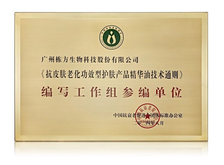 為助力抗皮膚老化護(hù)膚產(chǎn)品行業(yè)更好的發(fā)展,由上海林清軒生物科技有限公司牽頭組織,廣州棟方生物科技股份有限公司、上海交通大學(xué)等高校院所與企業(yè)共同參與制定《抗皮膚老化功效型護(hù)膚產(chǎn)品精華油技術(shù)通則》團(tuán)體標(biāo)準(zhǔn)。