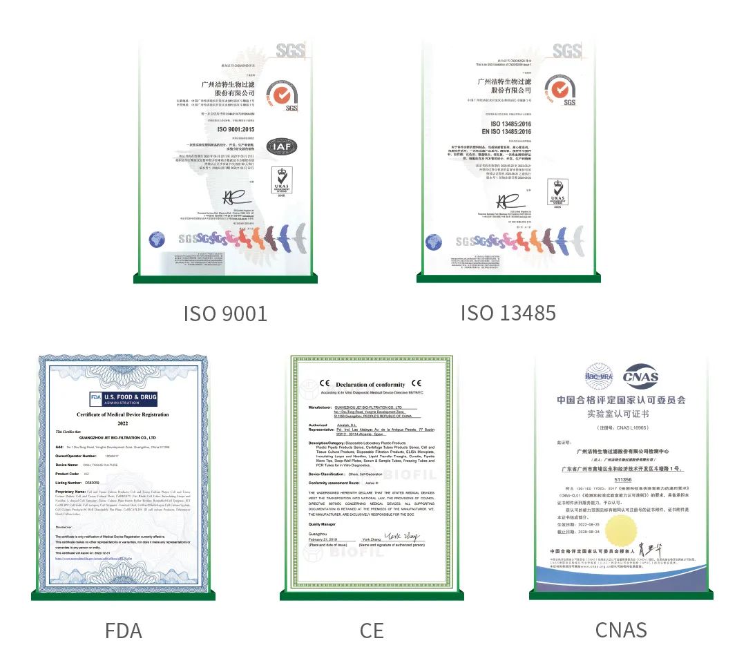 潔特生物CellSafe™系列產(chǎn)品均嚴(yán)格按照GMP標(biāo)準(zhǔn)規(guī)范、ISO 13485、ISO 9001質(zhì)量管理體系、CE、FDA、CNAS要求實施嚴(yán)苛生產(chǎn)管理與質(zhì)量管控。