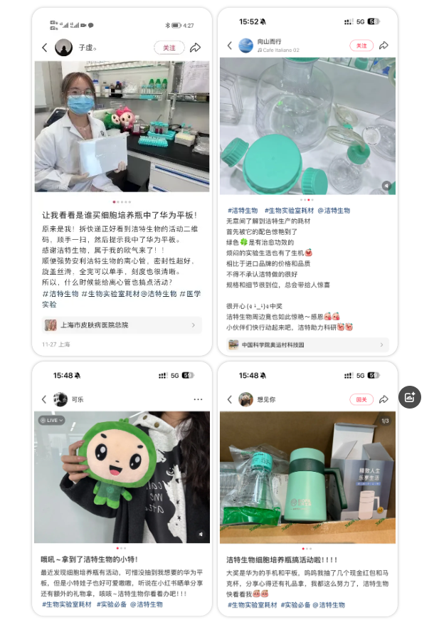 在小紅書關(guān)注“潔特生物”官方賬號;發(fā)布筆記分享您的中獎(jiǎng)心得,帶話題 #生物實(shí)驗(yàn)室耗材 #實(shí)驗(yàn)必備 并@潔特生物。