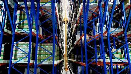 在立庫(kù)巨大的鋼貨架之間,有8條達(dá)60米的狹長(zhǎng)巷道,每條巷道上,都有一位“擎天柱”——堆垛機(jī),它們代替了傳統(tǒng)的人工和高位叉車(chē),在貨架間快速升降穿梭,精準(zhǔn)地從不同儲(chǔ)位取出或放入貨物。地面上,穿梭車(chē)(RGV)和自動(dòng)導(dǎo)引車(chē)(AGV)來(lái)回穿梭,承擔(dān)著物料與成品的運(yùn)輸任務(wù),保障貨物的高效流轉(zhuǎn)。而貨物分揀環(huán)節(jié),則由專(zhuān)業(yè)的機(jī)械手精準(zhǔn)完成。