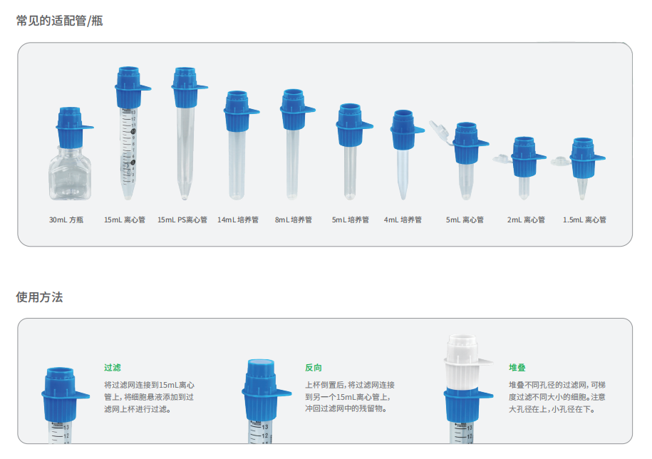 *不同目徑的過(guò)濾網(wǎng)可疊放使用,一步完成梯度過(guò)濾