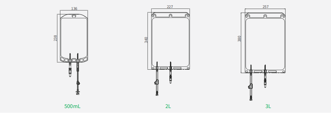 | 目錄號 | 容量 | 管路規(guī)格&尺寸 | 滅菌 | 包裝方式 | |||